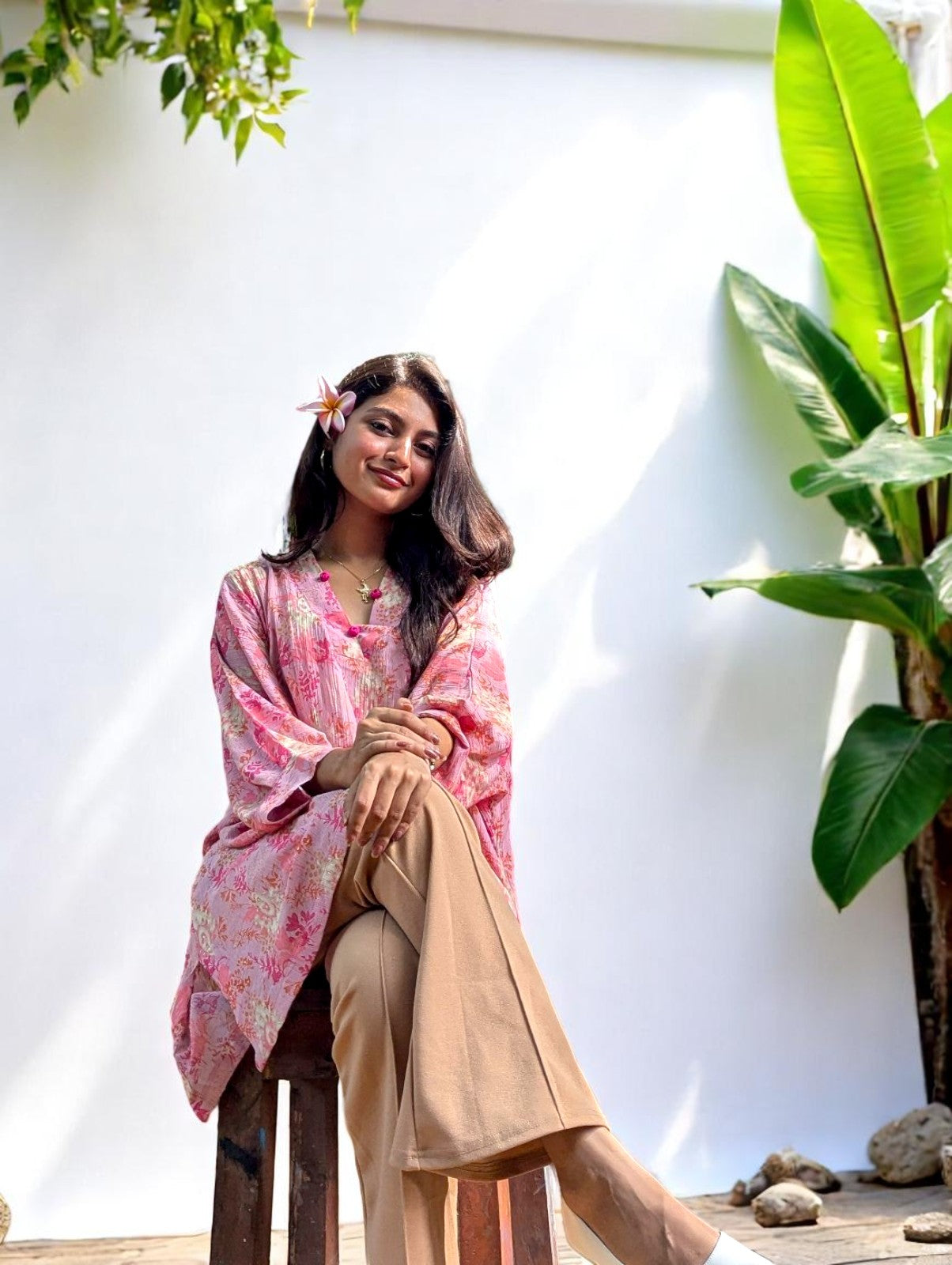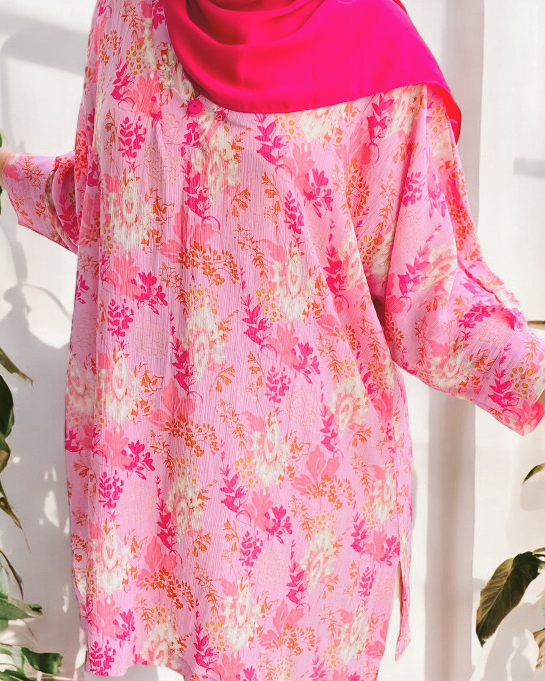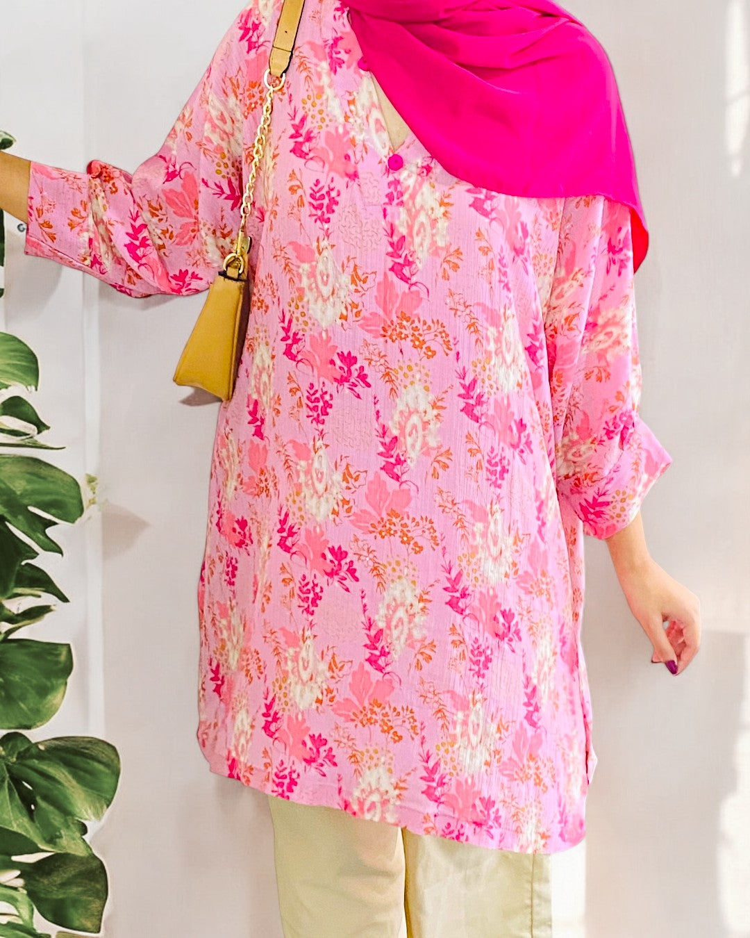 Flowery print cotton top featuring woolen buttons perfect for this summer