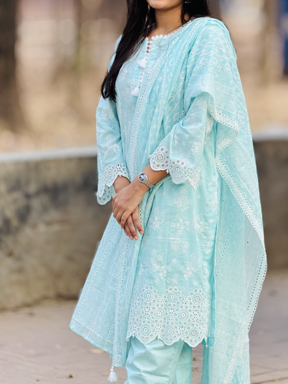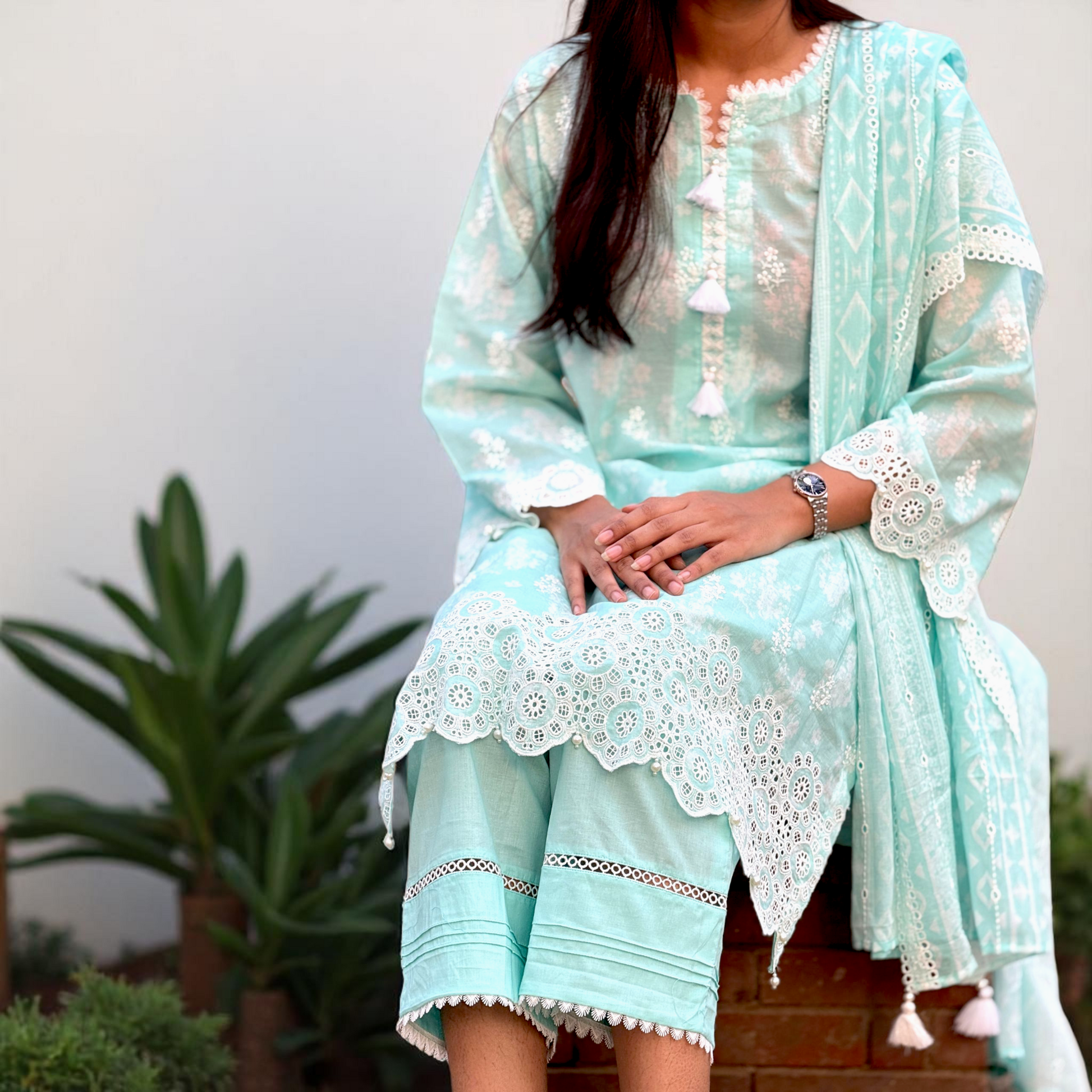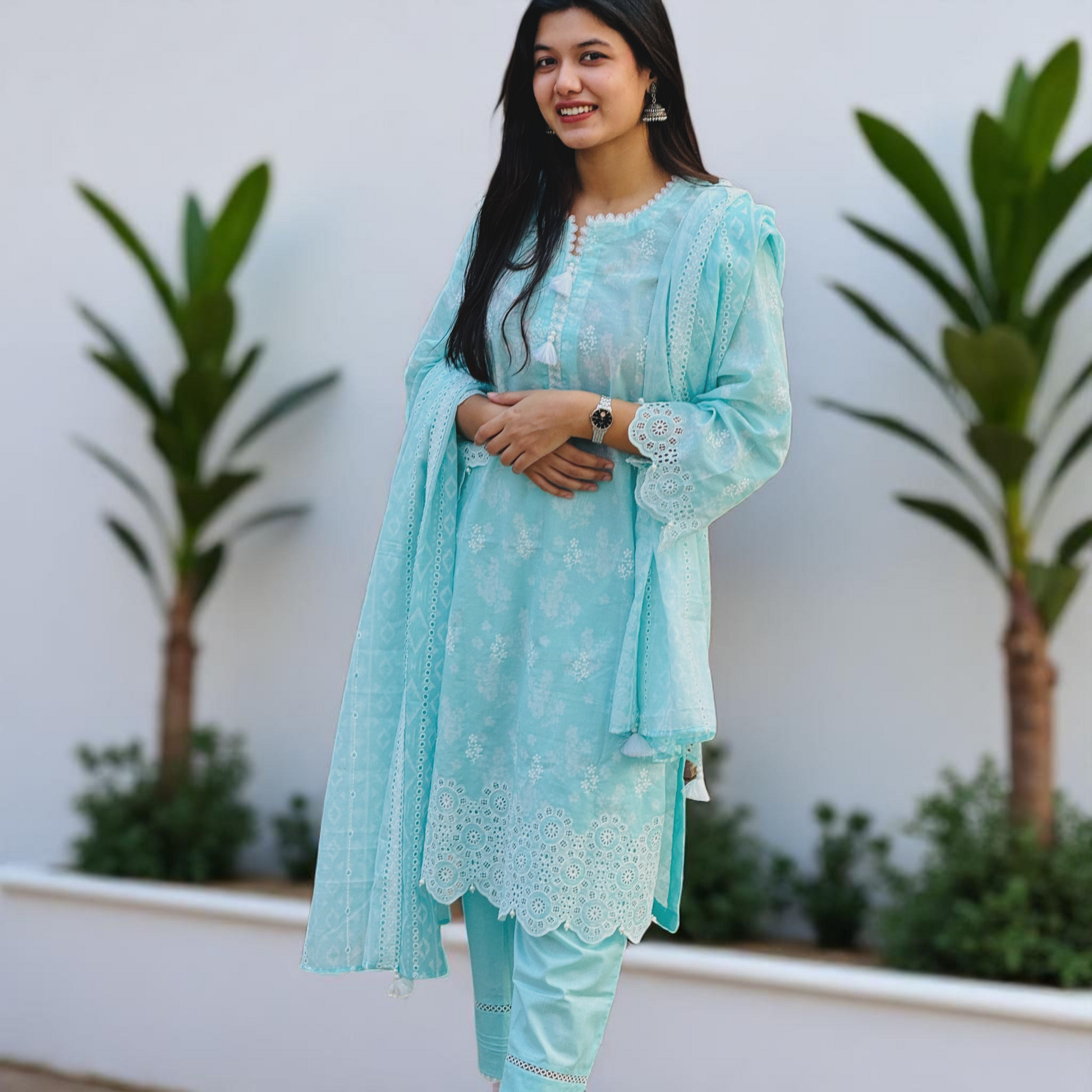 Pakistani FZ premium cotton collection, 3pc set in-house stitch with elegant detailing.
